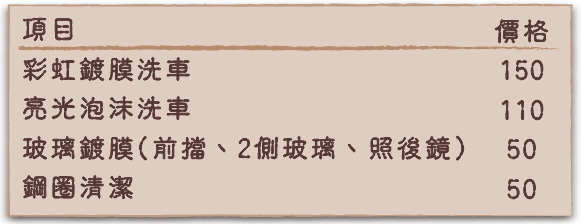 狀態洗淨並加上人員以海棉手工清潔及檢查,六道流程無刷毛,不傷車體,讓您的愛車更潔淨。